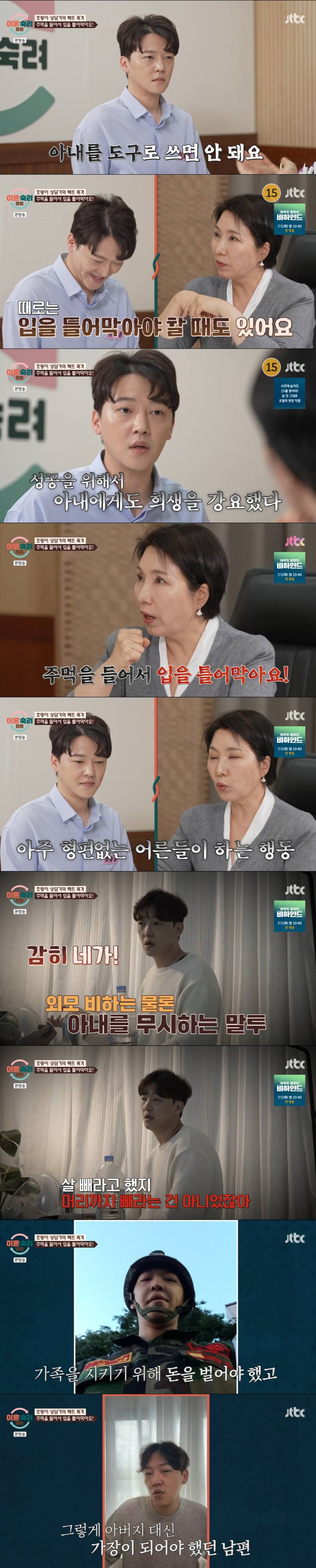 남편은 그런 아내가 열정이 부족해 보였다고 했고, 이호선 교수는 "아내를 도구로 쓰면 안 된다"라고 일침했다.