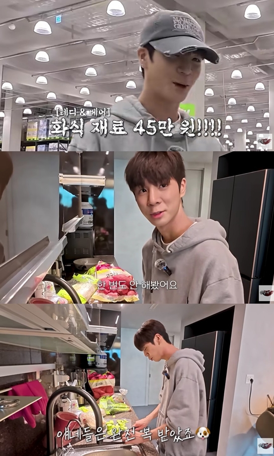 본격적으로 채소를 씻기 시작한 정동원은 "주방에서 처음 요리하는 거다. 한 번도 안 해봤다. 진짜 역사적인 날"이라며 감격했다. 그러면서 "테디는 많이 먹는데 베어는 맛있으면 먹고 맛 없으면 입도 안 댄다. 베어가 오늘 먹으면 그러면 저요리 잘하는 거다"라고 했다.