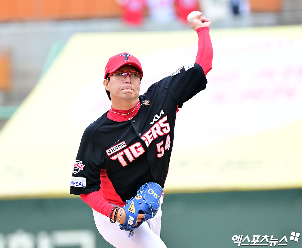 (엑스포츠뉴스 인천, 김한준 기자) 21일 오후 인천SSG랜더스필드에서 열린 '2025 신한 SOL Bank KBO리그' KIA 타이거즈와 SSG 랜더스의 경기, 1회말 KIA 선발투수 양현종이 공을 힘차게 던지고 있다.