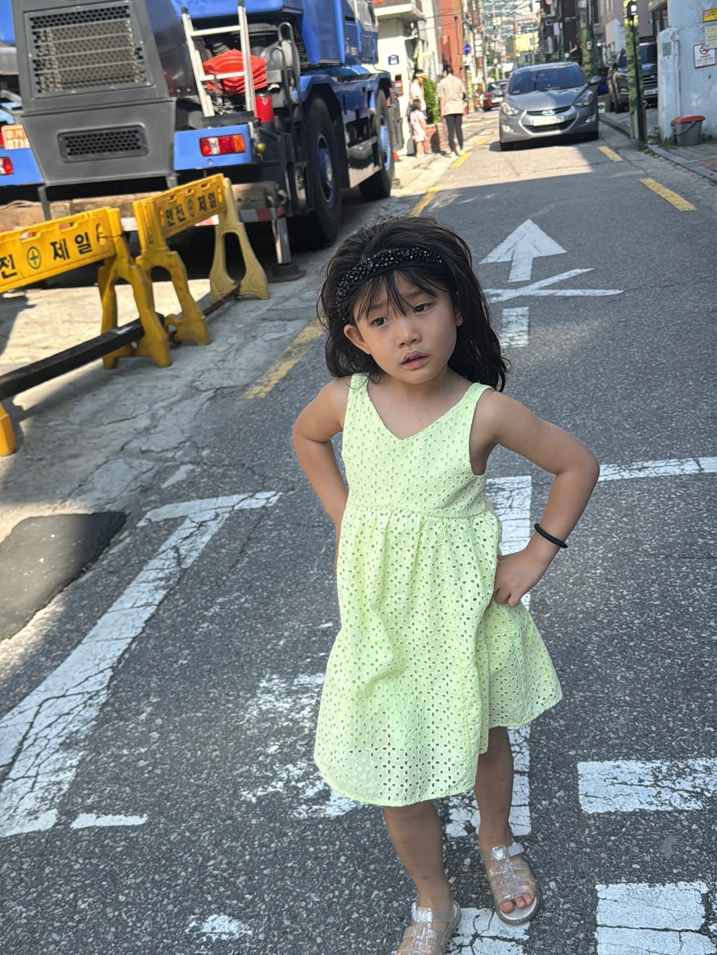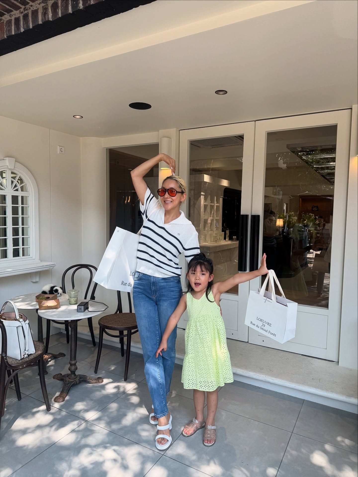 바다는 스트라이프 니트와 데님 팬츠, 화이트 샌들로 편안하면서도 세련된 데일리룩을 완성했으며, 딸은 연두빛 원피스와 귀여운 샌들로 사랑스러운 매력을 발산했다.