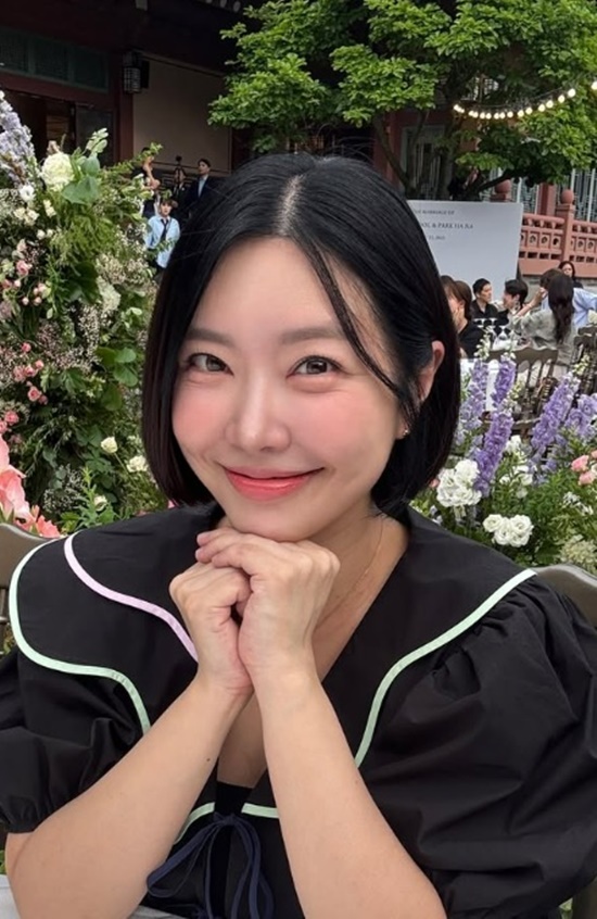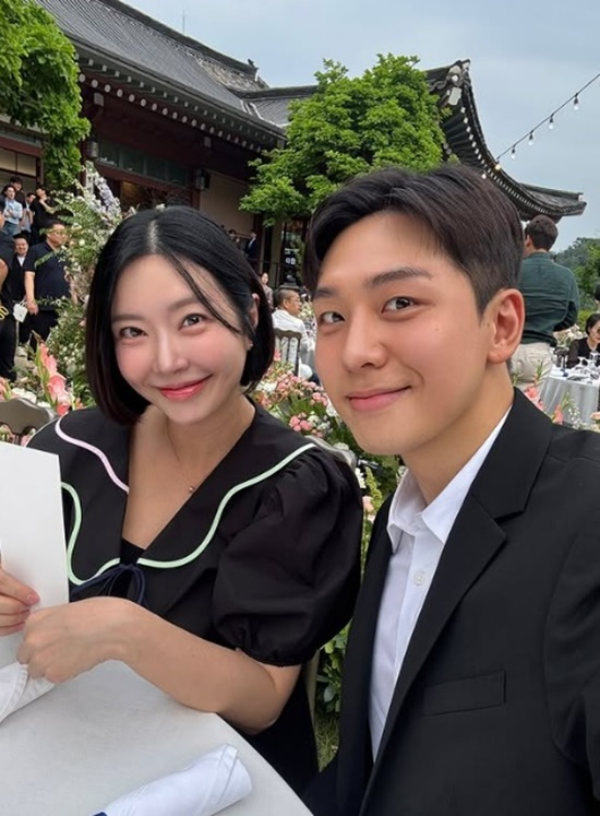 공개된 사진에는 배우 박하나와 김태술의 결혼식에 참석한 레이디 제인이 남편 임현태와 함께 환한 표정으로 두 사람의 결혼을 축하하고 있는 모습이 담겨 있다.