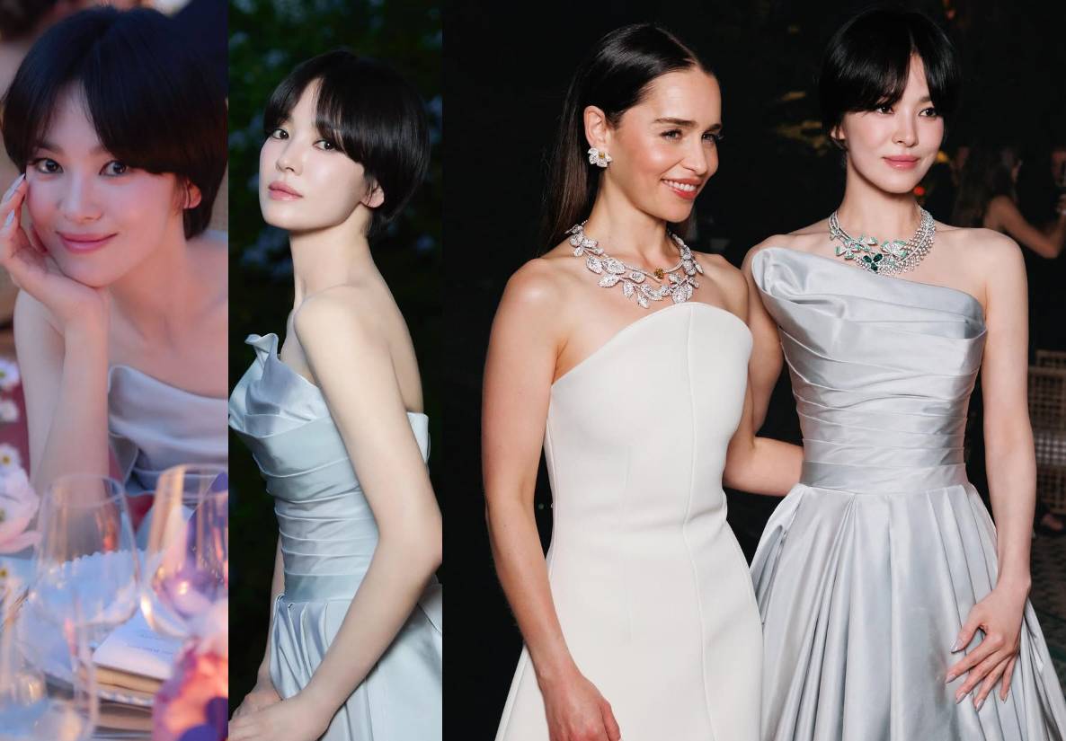 공개된 사진 속 송혜교는 에밀리아 클라크와 함께 주얼리 브랜드의 행사장에서 우아한 드레스를 입은 채 포즈를 취하고 있는 모습이다.