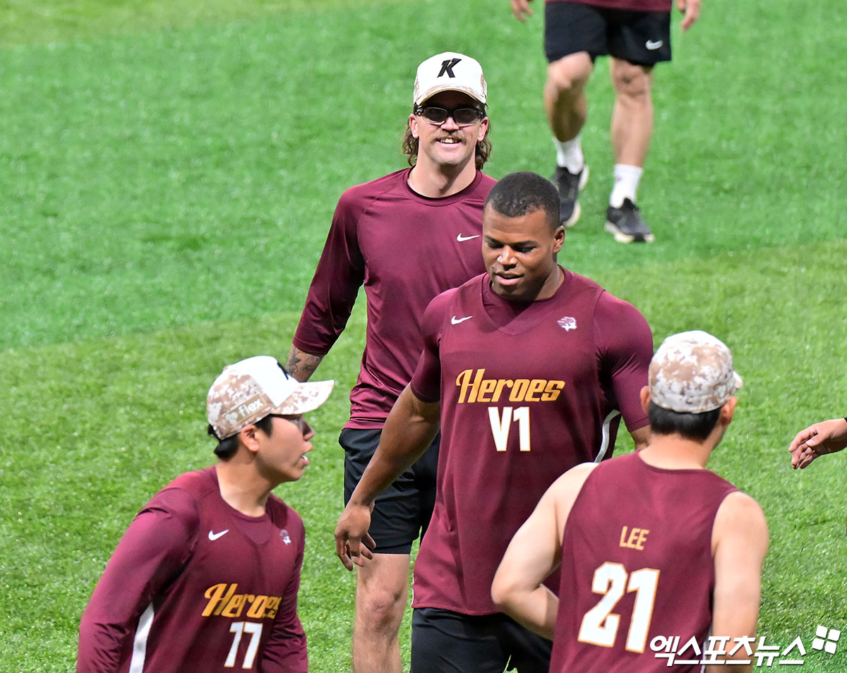 (엑스포츠뉴스 고척, 김한준 기자) 24일 오후 서울 구로구 고척스카이돔에서 열리는 '2025 신한 SOL Bank KBO리그' KIA 타이거즈와 키움 히어로즈의 경기, 경기 전 웰스가 훈련에 임하고 있다.