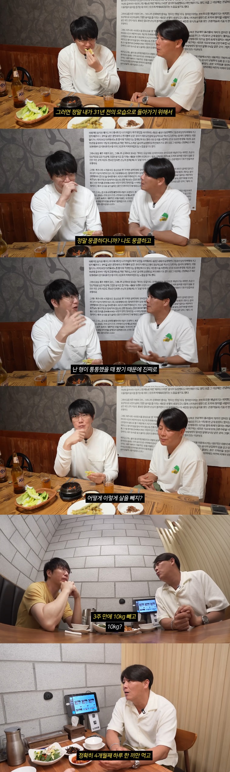 이어 이재훈은 "정말 뭉클하다. 나도 뭉클하고"라고 덧붙였고, 성시경은 "난 형이 통통했을 때 봤기 때문에 진짜로"라며 "어떻게 이렇게 살을 빼지?"라고 감탄했다.