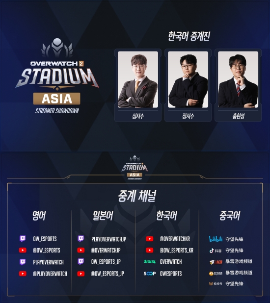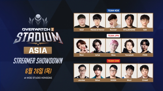 이번 행사는 '오버워치 2'의 시즌17 업데이트 '파워 업' 버전 스타디움 모드를 기반으로 진행된다. 이에 한국, 일본, 중국을 대표하는 인기 스트리머들이 각 지역의 자존심을 걸고 경합을 벌인다.