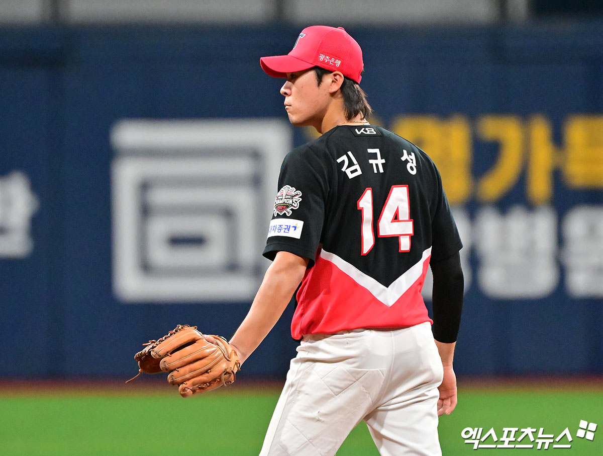 (엑스포츠뉴스 고척, 김한준 기자) 25일 오후 서울 구로구 고척스카이돔에서 열린 '2025 신한 SOL Bank KBO리그' KIA 타이거즈와 키움 히어로즈의 경기, 9회말 1사 2루 KIA 김규성이 포구실책을 한 후 아쉬워하고 있다.
