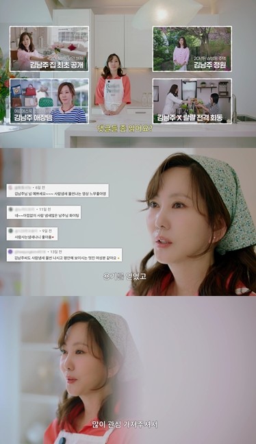 최근 진행된 SBS Life 새 예능 프로그램 '안목의 여왕 김남주' 6회 촬영에서 "우리 프로그램 영상이 공개가 됐는데 댓글을 읽어봤냐"라는 제작진 질문에 김남주는 "읽는다. 당연히 읽는다"라고 답했다.
