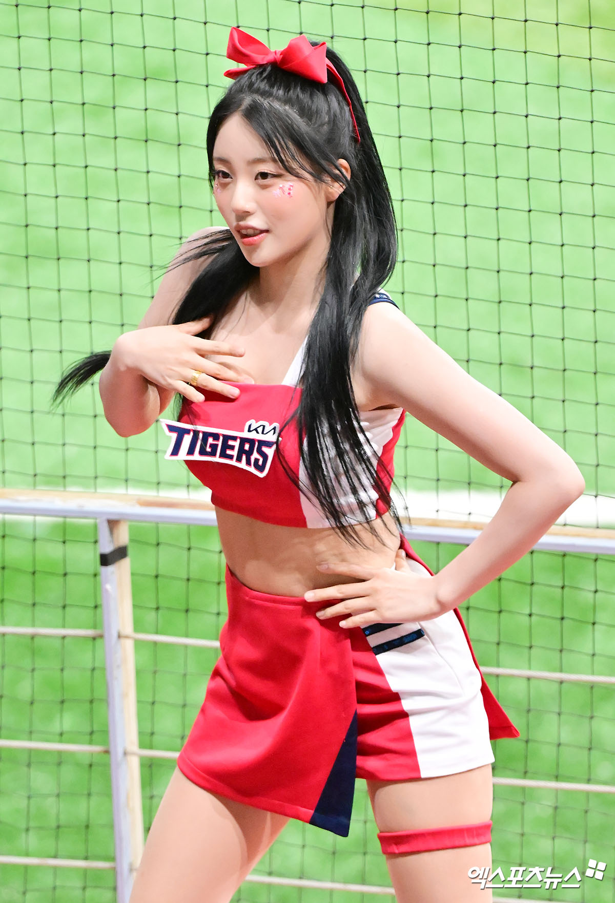 (엑스포츠뉴스 고척, 김한준 기자) 26일 오후 서울 구로구 고척스카이돔에서 열린 '2025 신한 SOL Bank KBO리그' KIA 타이거즈와 키움 히어로즈의 경기, 유세빈 치어리더가 멋진 공연을 선보이고 있다.