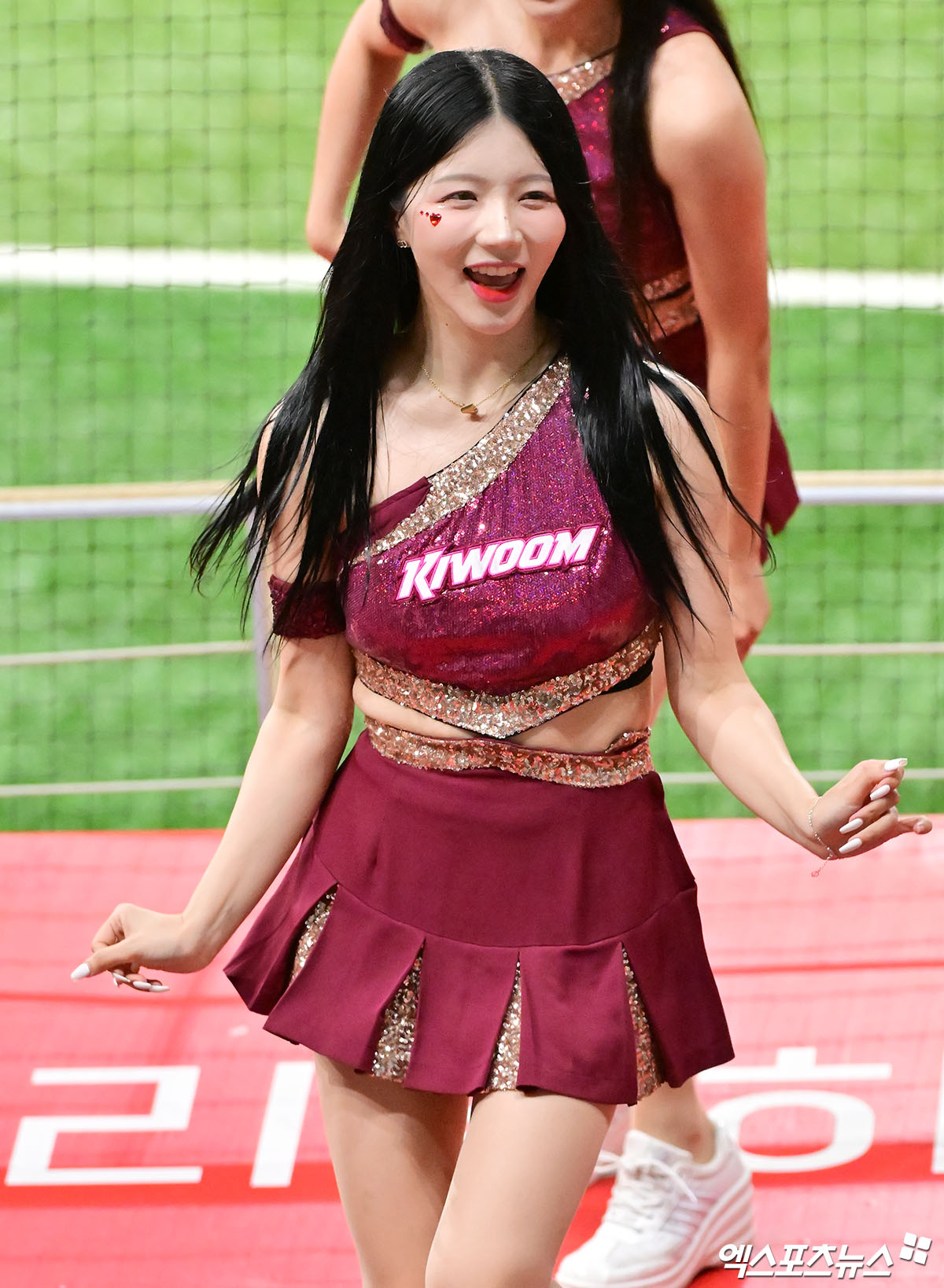 (엑스포츠뉴스 고척, 김한준 기자) 27일 오후 서울 구로구 고척스카이돔에서 열린 '2025 신한 SOL Bank KBO리그' 삼성 라이온즈와 키움 히어로즈의 경기, 윤지나 치어리더가 멋진 공연을 선보이고 있다.