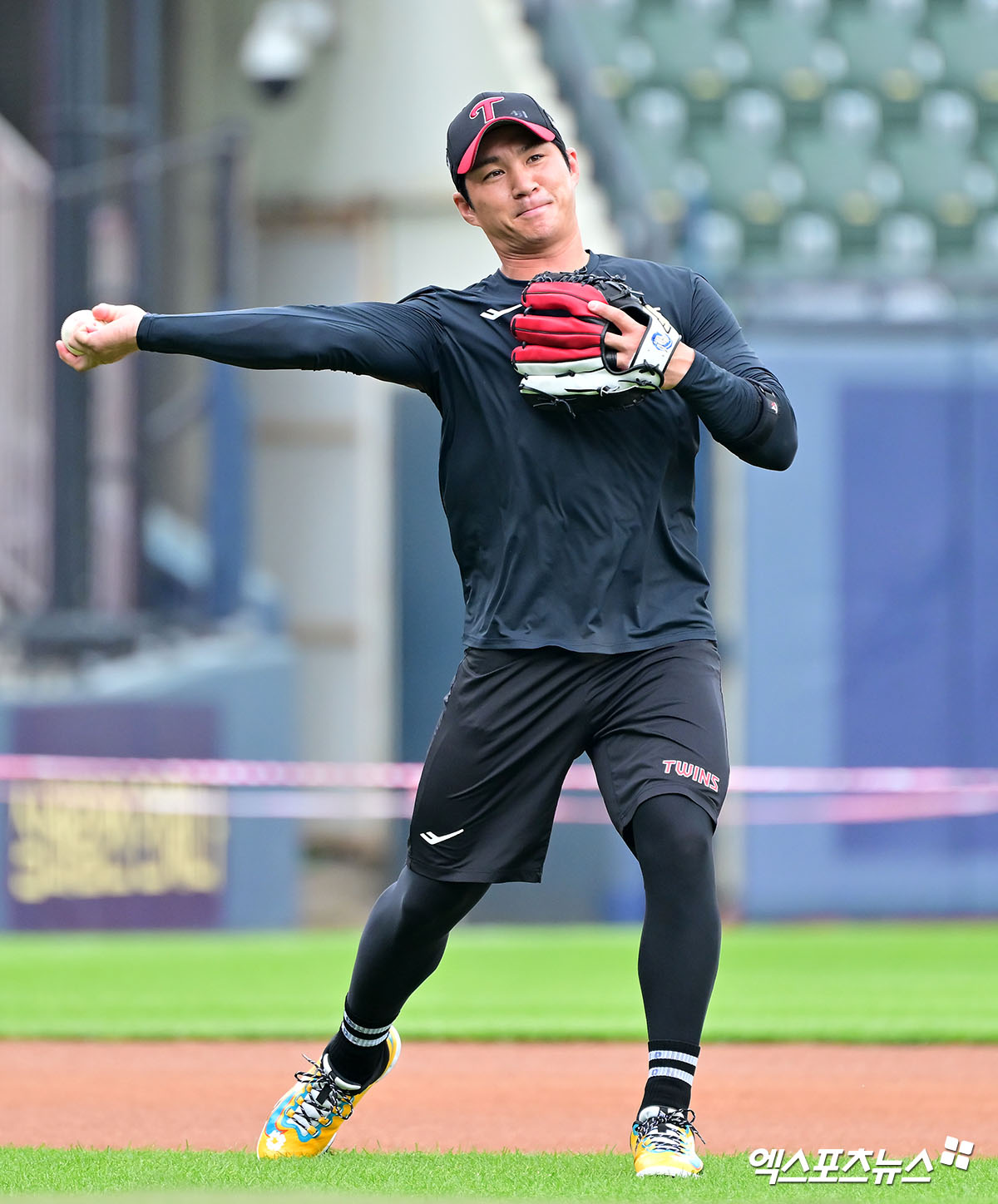 (엑스포츠뉴스 잠실, 김한준 기자) 29일 오후 서울 송파구 잠실야구장에서 열리는 '2025 신한 SOL Bank KBO리그' KIA 타이거즈와 LG 트윈스의 경기, LG 오지환이 훈련에 임하고 있다.