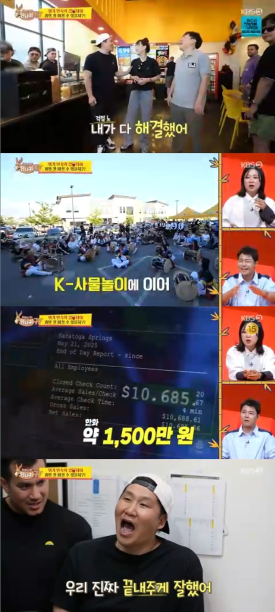 송정훈은 컵밥을 무려 1700개나 팔면서 한화로 1500만 원의 매출을 기록한 것을 확인하고 직원들을 격려했다.