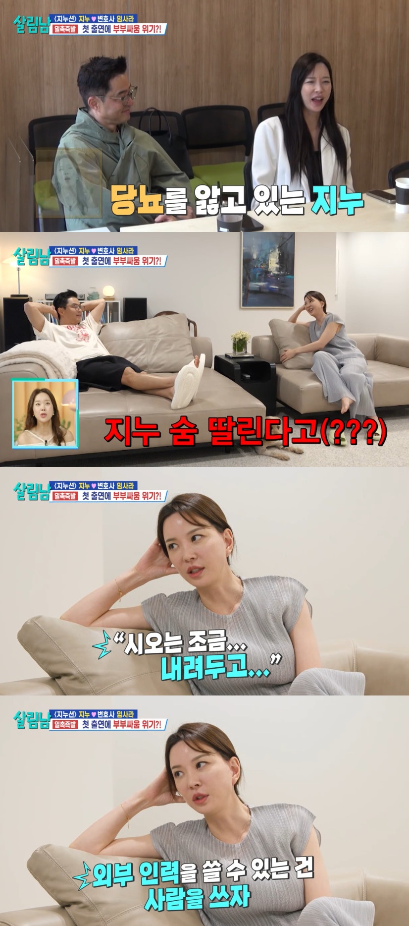 아내는 "싫은 이야기도 들어라. 시오는 좀 내려두고 집안일도 내려두고. 외부 인력 쓸 수 있는 건 그렇게 하자"고 권유했다.