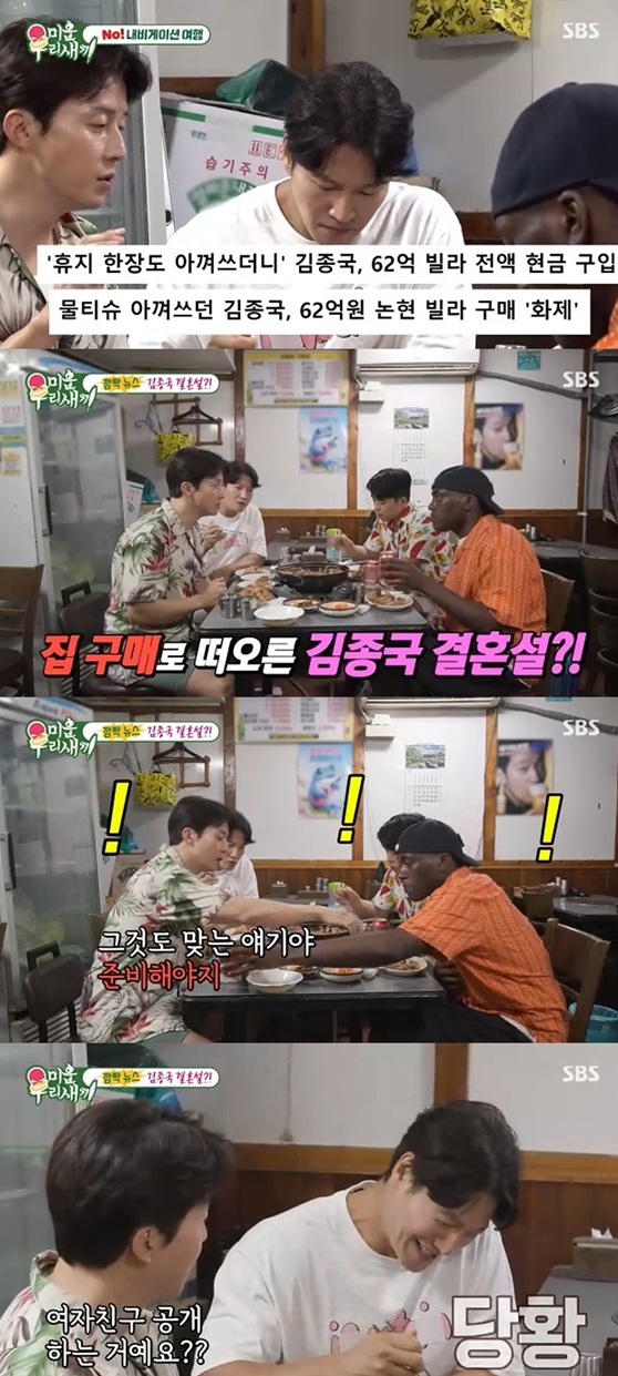 김종국은 신혼집 의혹이 언급되자 "그것도 맞는 이야기다. 준비해야지. 집이 없으면 어떻게 하냐"라고 폭탄 발언을 했다.