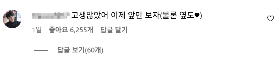 현숙의 장문의 글에 남자친구 영식은 "고생많았어. 이제 앞만 보자(물론 옆도)"라며 애정어린 달달한 댓글을 달아 이목을 끌었다.