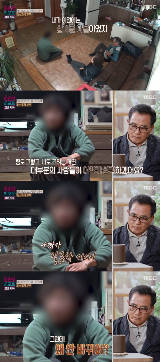 남편, 아내, 아들이 한자리에 모였다. 아내가 "서운한 거 있으면 얘기해라 여기서 서로 풀자"라고 말했다. 남편은 "언제부터였는지는 몰라도 나한테 상냥하지 못하냐"라고 아들에게 물었다. 아들은 "내가 예전에는 살가운 아들이었다. 그런데 형도 그러고 나도 그러면 대부분의 사람들은 어떻게 생각하겠냐. 아빠가 잘못을 한 거다. 그런데 왜 안 바뀌냐"라고 말했다.