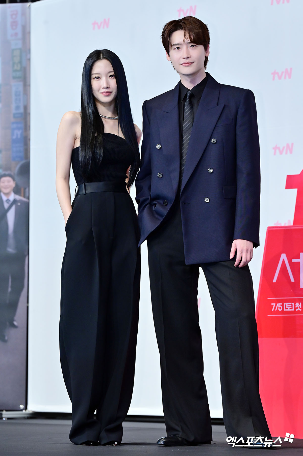 문가영과 함께 주연을 맡은 배우 이종석도 참석해 훈훈한 투샷을 연출했다. 이종석은 네이비 더블 수트와 블랙 셔츠, 스트라이프 넥타이로 댄디한 매력을 뽐냈다.