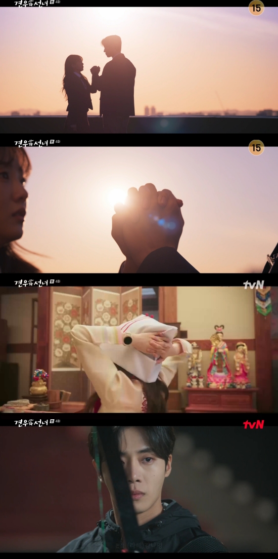 1일 방송된 tvN 새 월화드라마 '견우와 선녀' 4회에서는 박성아(조이현 분)와 배견우(추영우)가 손깍지를 끼고 설렘을 느낀 모습이 그려졌다.