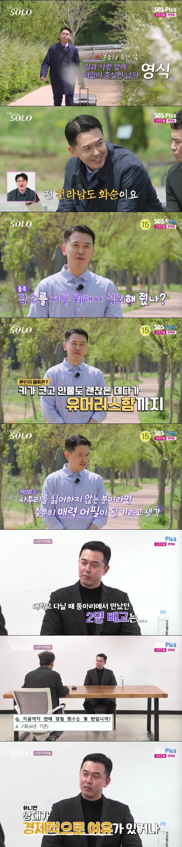 영식은 "나는 여기 현지인이다. 장소를 날 위해 섭외해 줬나 생각이 들었다. 키가 크고 인물도 이 정도면 괜찮은 것 같고 유머러스한 편이다. 사투리를 싫어하지 않는 분이면 충분히 매력 어필될 것으로 생각한다"라며 자신했다.
