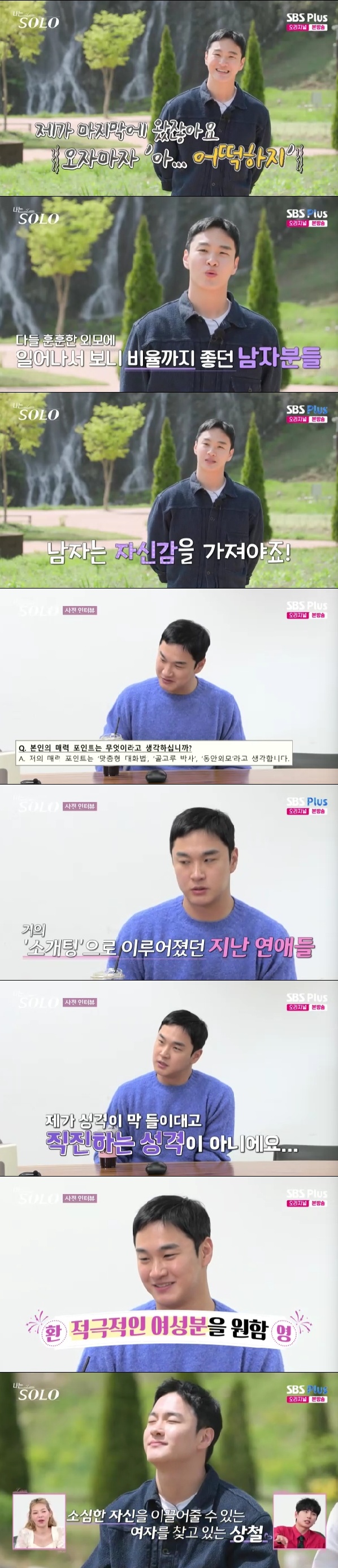 송해나가 좋아하는 스타일의 남자 상철이 나타났다. 상철은 "내가 마지막에 왔는데 오자마자 아 어떡하지 했다. 다들 다 훈훈하고 일어나니 비율도 되게 좋고 멋있더라. 남자는 자신감을 가져야 한다. 자기가 제일 잘생겼다고 생각해야 한다"라고 말했다.