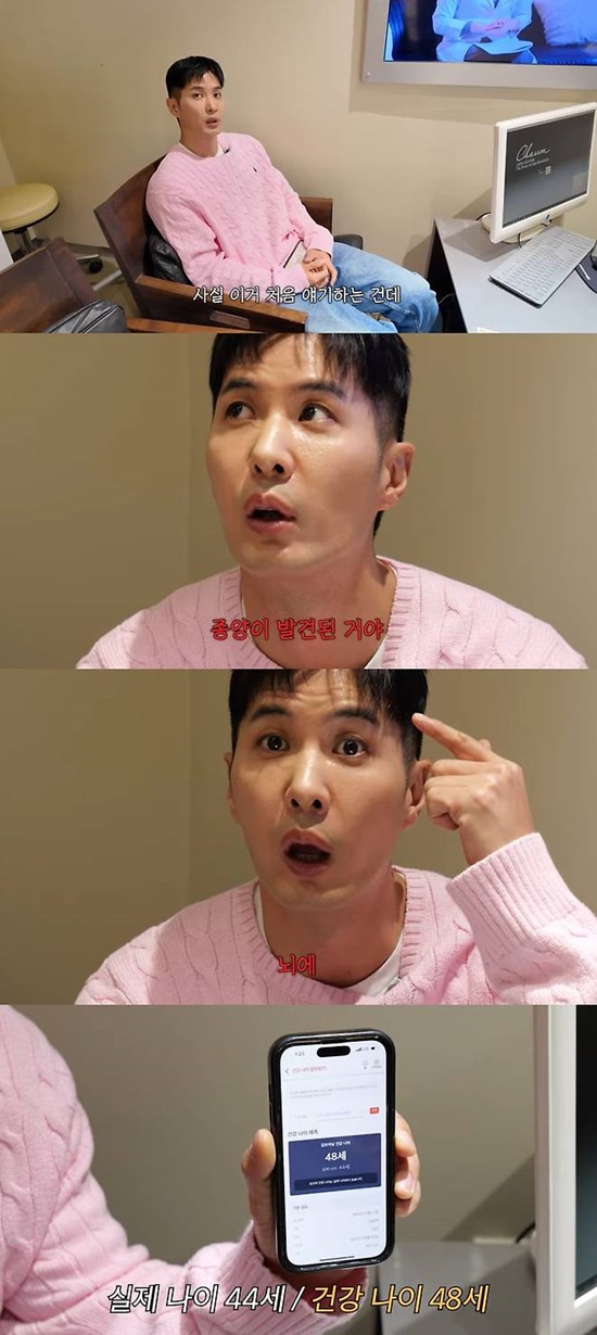 김지석은 자신의 유튜브 채널을 통해 44세의 나이에 건강나이 '48세' 진단을 받았던 이야기를 꺼내며 "30대 때 받았던 건강검진에서 뇌에 종양이 발견됐다. 다행히 악성은 아니었다. 그 다음부터는 건강검진은 2~3년 안에 풀로 받고 있다. 하지만 아직도 술, 담배는 많이 한다"고 고백했다.