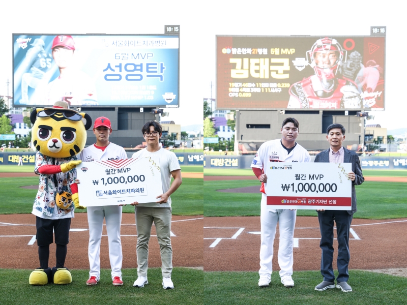 투수 성영탁은 서울화이트치과에서 시상하는 6월 월간 MVP에 선정됐다. 시상은 서울화이트치과 하동옥 원장이 했고, 시상금은 100만원이다.