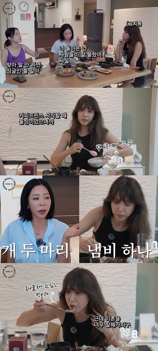 채정안은 "2007년도, '커피프린스' 시작할 때 돌싱이었다"라고 밝혔다. 이혜영은 "나는 (이혼할 때) 개 두 마리 데리고 왔고 얘는 냄비 하나 가지고 나왔다"라고 밝혔다.
