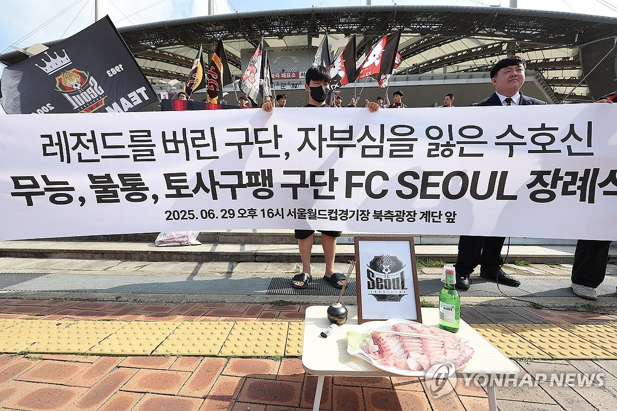지난달 29일 서울월드컵경기장에서 열린 서울과 포항의 K리그 경기 전 서울 팬들은 장례식 퍼포먼스, 트럭 시위를 진행했고 경기 중에는 기성용을 계획에서 제외했다는 이유로 김기동 서울 감독을 향해 퇴진을 요구하는 구호를 외쳤다.
