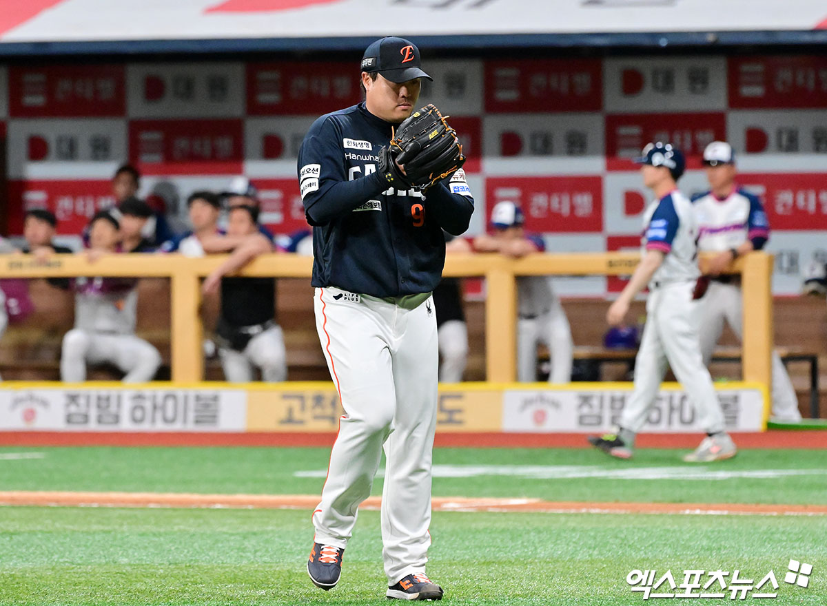 (엑스포츠뉴스 고척, 김한준 기자) 5일 오후 서울 구로구 고척스카이돔에서 열린 '2025 신한 SOL Bank KBO리그' 한화 이글스와 키움 히어로즈의 경기, 4회말 수비를 마친 한화 류현진이 박수를 치고 있다.