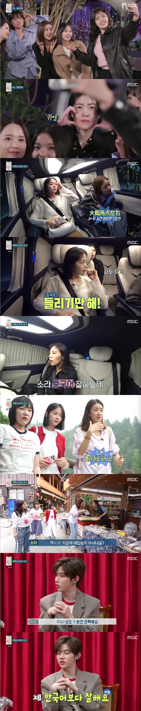 강소라는 운전기사에게 중국어로 물어보며 뜻밖의 중국어 실력을 자랑했다. 김민영과 김보미가 "대단하다. 멋있다"라고 감탄하자 "입금되면 다 하게 돼 있다"라며 너스레를 떨었다.