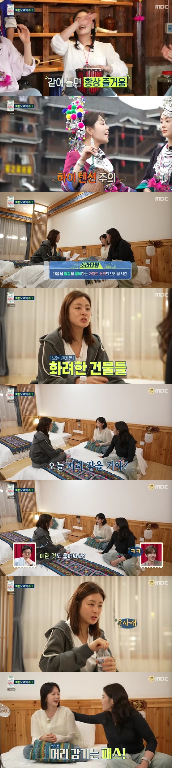 멤버들은 숙소에 도착했다. 강소라는 "내일 일정이 빡빡하다"라며 동족이 거주하는 정양팔채를 방문한다고 알렸다.