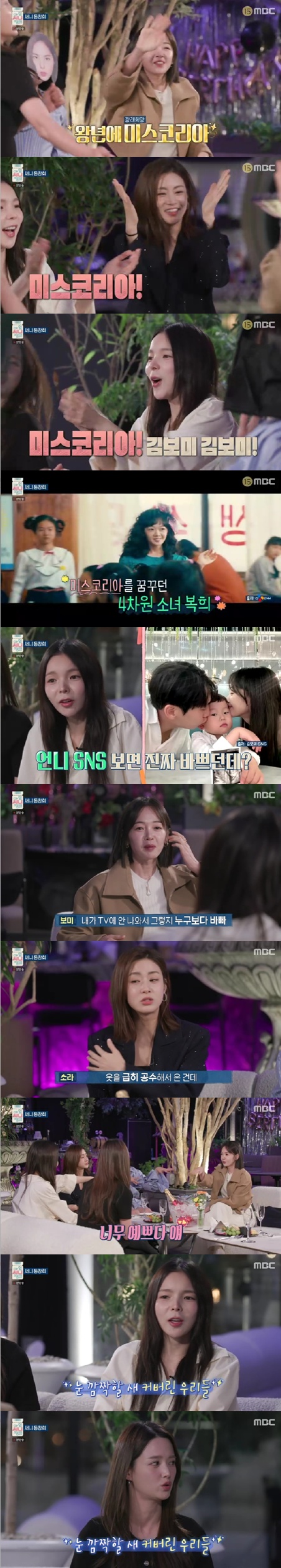 김보미가 등장하자 멤버들은 "어떻게 시간을 내고 왔어"라며 반가워했다. 김보미는 "나 애 둘을 낳아가지고. 내가 TV에 안 나와서 그렇지 누구보다 바빠""라며 근황을 밝혔다.