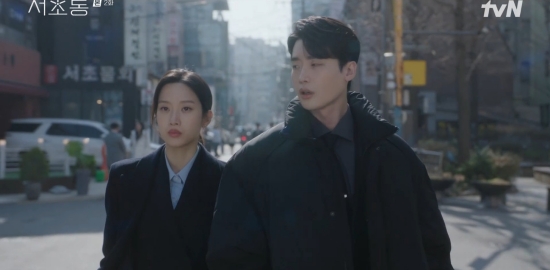 6일 방송된 tvN 새 토일드라마 '서초동' 2회에서는 강희지(문가영 분)와 안주형(이종석)이 10년 만에 재회한 모습이 그려졌다.
