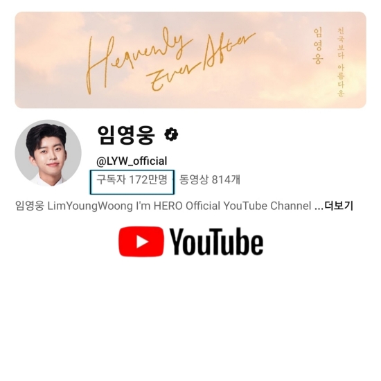 최근 임영웅의 공식 유튜브 채널 '임영웅'(애칭 웅튜브)은 구독자 172만 명을 돌파했다.