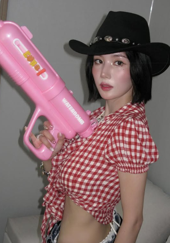의상 또한 눈길을 끌었다. 권은비는 빨간 체크 셔츠에 화이트 브라톱, 데님 핫팬츠를 매치한 섹시 카우걸 스타일로 등장해 이목을 집중시켰다. 특히 군살 없는 탄탄한 복부 라인과 볼륨감 넘치는 몸매가 강조된 의상은 단숨에 현장 분위기를 뜨겁게 달궜다.