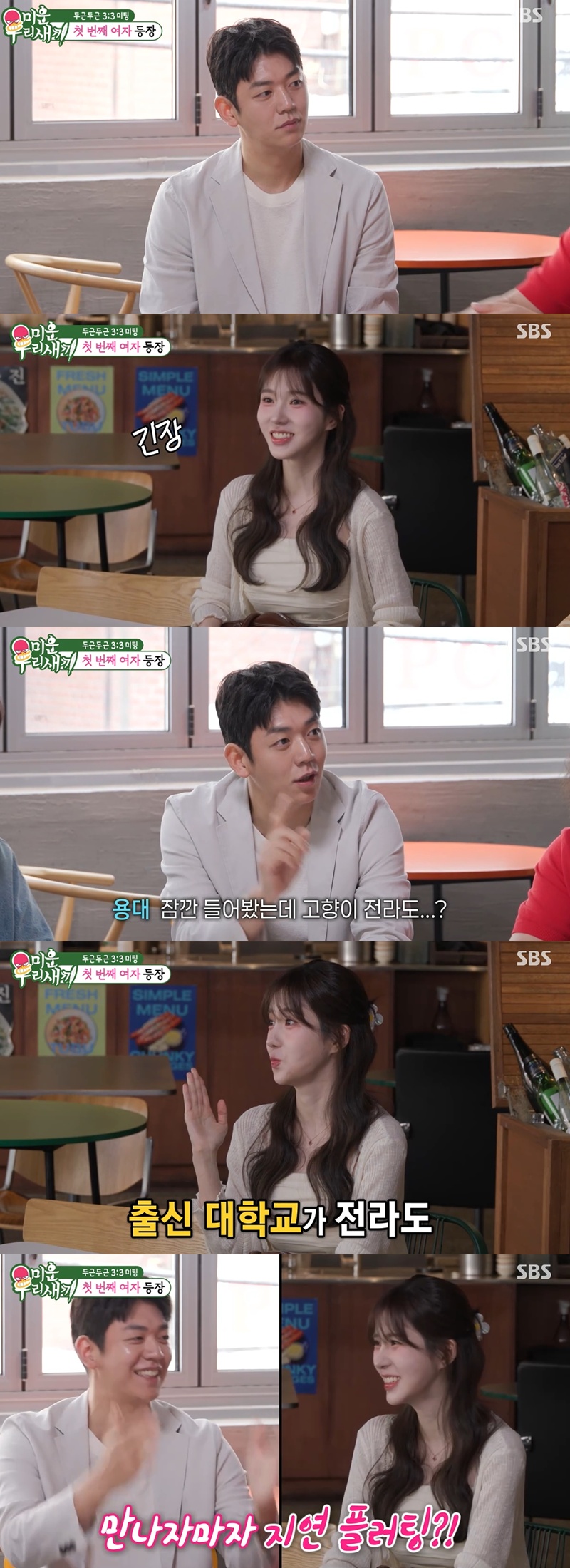 이날 세 사람은 소개팅 자리에서 여성을 기다렸고, 곧 첫 번째 소개팅녀가 등장했다. 그녀의 미모에 서장훈은 "미인이시네"라며 감탄했고, 세 남자도 놀라운 반응을 보였다. 최진혁은 자리에서 일어나 인사를 건넸고, 이를 본 이용대는 "먼저 일어나네"라고 말하며 뒤따라 일어섰다.