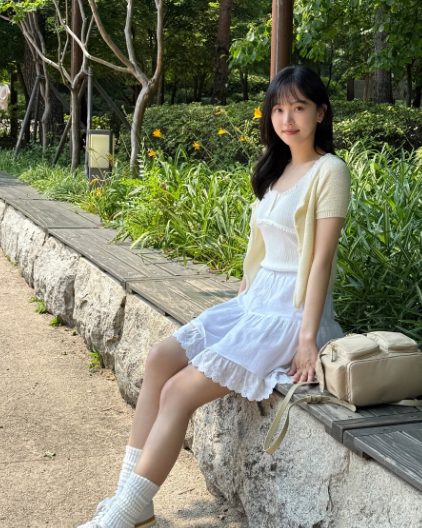공개된 사진 속 강한나는 숲길과 카페 등을 배경으로 산뜻한 아이보리 컬러의 여름룩을 완성해 눈길을 끌었다. 그는 잔잔한 주름 디테일이 돋보이는 슬리브리스 톱에 크롭 길이의 아이보리 니트 가디건을 걸쳐 청순하면서도 발랄한 분위기를 연출했다.