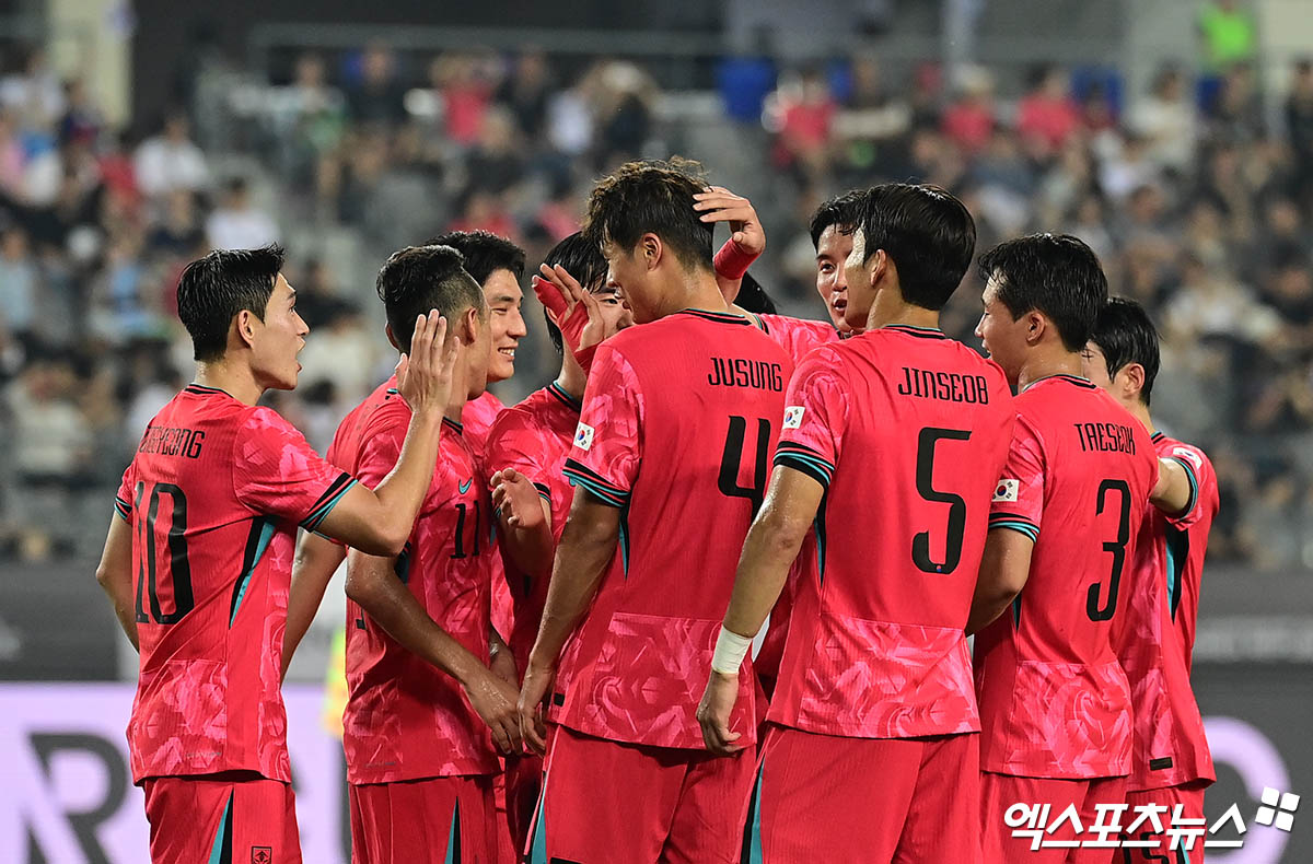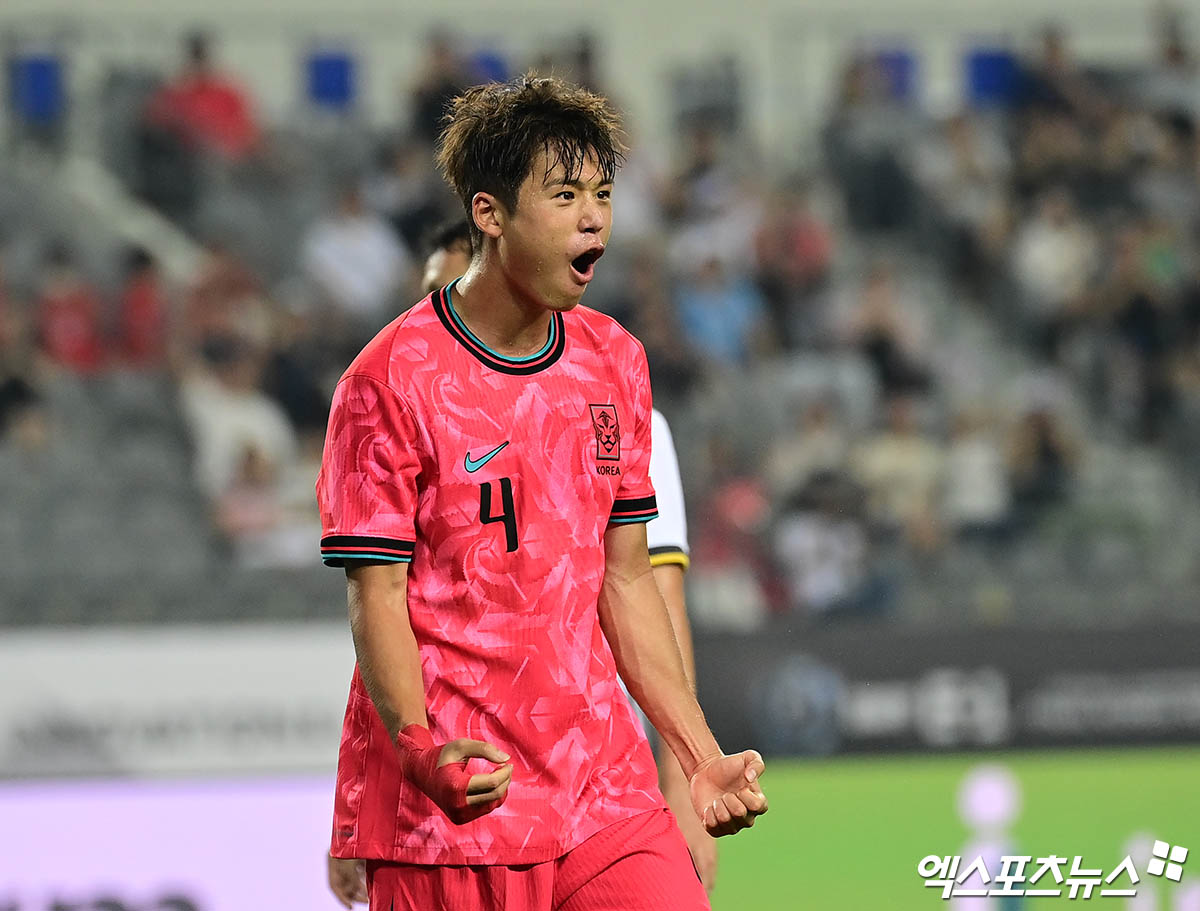 7일 용인미르스타디움에서 열린 대한민국과 중국의 2025 동아시아축구연맹(EAFF) E-1 챔피언십(동아시안컵) 남자부 1차전에서 중앙 수비 김주성이 세 번째 골을 터뜨렸다.