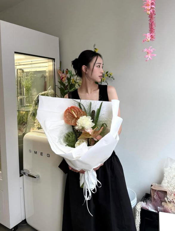 손연재는 7일 자신의 인스타그램에 특별한 멘트 없이 꽃다발을 안고 있는 사진 두 장을 게재했다. 공개된 사진 속 손연재는 어깨 라인이 드러나는 블랙 롱 원피스를 입고, 대형 꽃다발을 안은 채 포즈를 취하고 있다.
