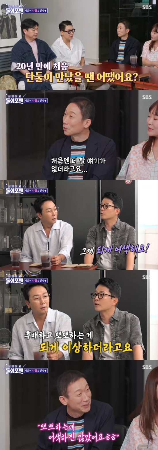 이에 이상민은 "20년을 알고 지내다가 처음으로 단둘이 만났을 때 어땠느냐"고 물었고, 정석용은 "어색하고 쑥스러웠다. 할 얘기가 없더라"면서 웃었다.