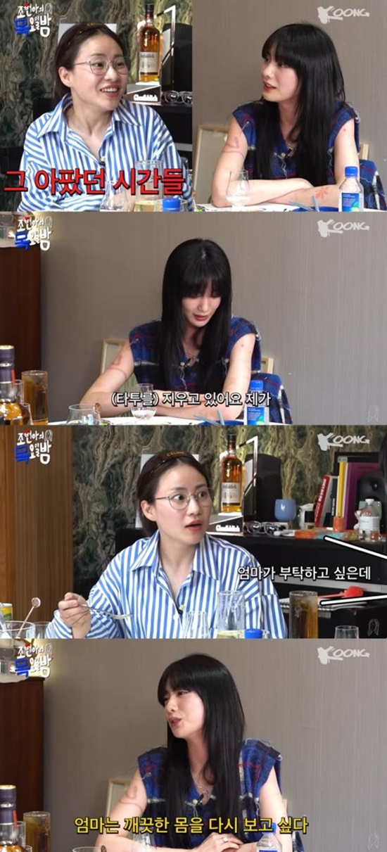 나나는 "엄마가 '깨끗한 몸을 다시 보고 싶다'고 조심스럽게 부탁하시더라. 타투를 했을 때도 엄마가 허락을 해주셔서 했던 것이기에, 지우는 것도 흔쾌히 '지우면 되지, 뭐 어려워?'라는 생각으로 했었다"고 고백했다.