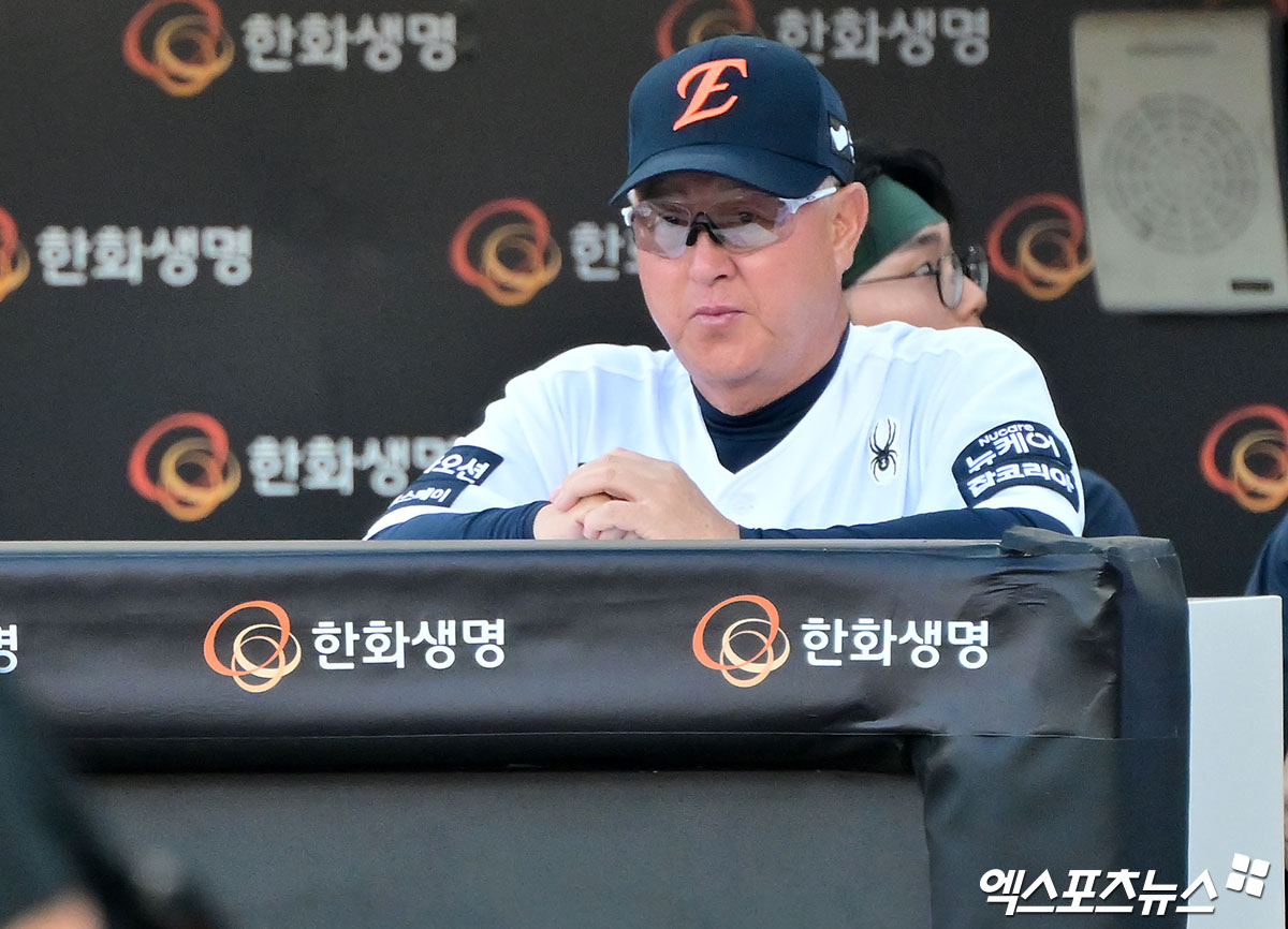 (엑스포츠뉴스 대전, 김한준 기자) 9일 오후 대전 한화생명 볼파크에서 열린 '2025 신한 SOL Bank KBO리그' KIA 타이거즈와 한화 이글스의 경기, 한화 김경문 감독이 경기를 지켜보고 있다.