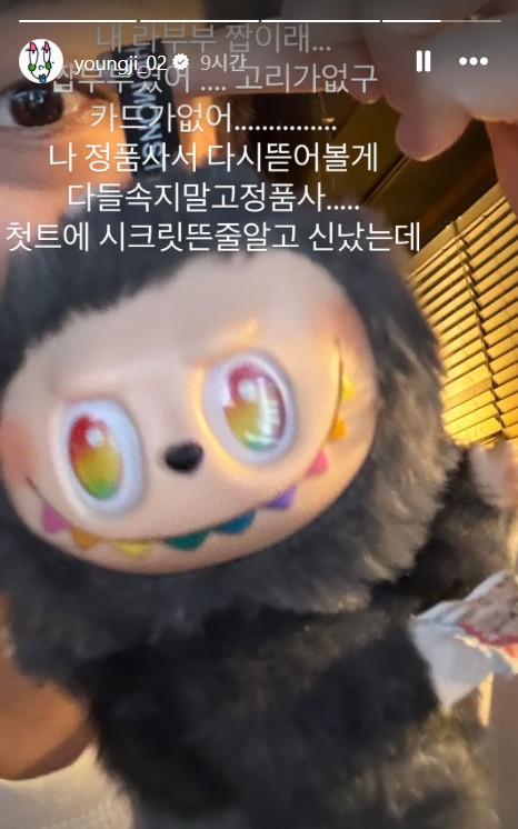 하지만 기쁨도 잠시 이영지는 "내 라부부 짭(가짜)이래. 짭부부였어... 고리가 없고 카드가 없어... 나 정품 사서 다시 뜯어볼게. 다들 속지말고 정품 사. 첫트(첫 시도)에 시크릿 뜬 줄 알고 신났는데"라며 속상한 마음을 드러냈다.