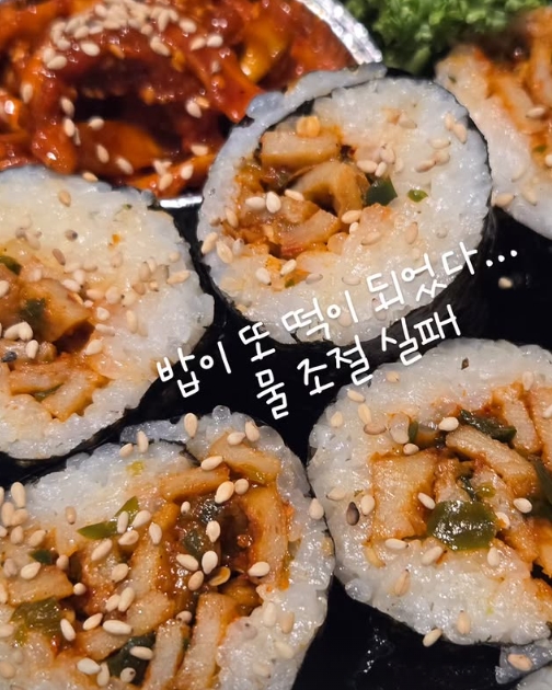 10일 박지연은 개인 채널에 "밥이 또 떡이 되었다... 물 조절 실패"라는 문구와 함께 한 장의 사진을 업로드했다.