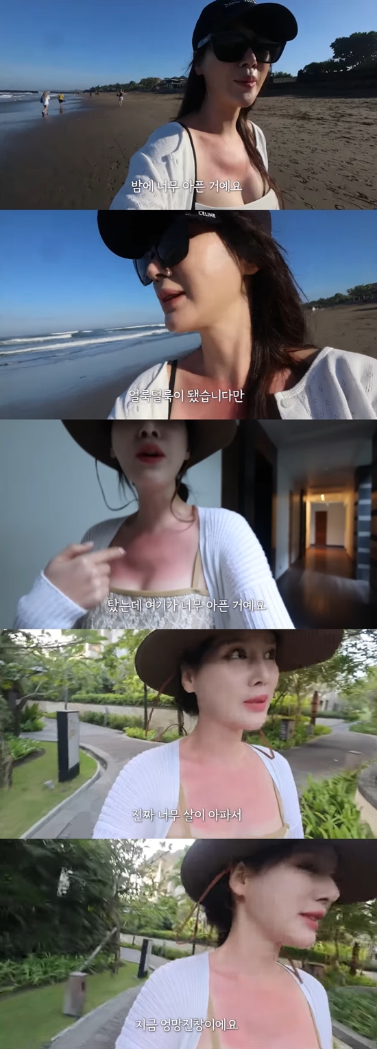 또 이혜원은 "일광화상으로 예정했던 옷을 입을 수가 없는 상황이다. 너무 아프다. 왜냐하면 제가 태닝을 안 할 생각이었다. 근데 어제 너무 열심히 수영을 하면서 아이들하고 노느라 튜브에 올라가 앉아 있어서 탔다. 탔는데 (상체와) 팔이 너무 아프다. 너무 살이 아파서 엉망진창이다"라며 고통을 호소했다.