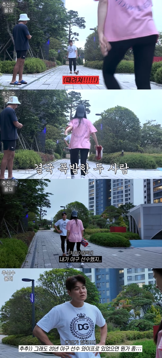 이어 진행된 연습에서 처참한 하원미의 실력을 본 추신수는 말을 잃었다. 추신수가 한숨을 쉬며 글러브를 땅으로 던지자, 하원미는 "내가 그런 거 다 할 줄 알았으면 내가 야구선수 했다"라며 폭발했다. 이에 지지 않고 추신수도 "그래도 20년 야구선수 와이프로 있었으면 좀 보고 배운 게 있을 거 아니냐. 왜 이렇게 못 하냐"라며 답답함을 드러냈다.