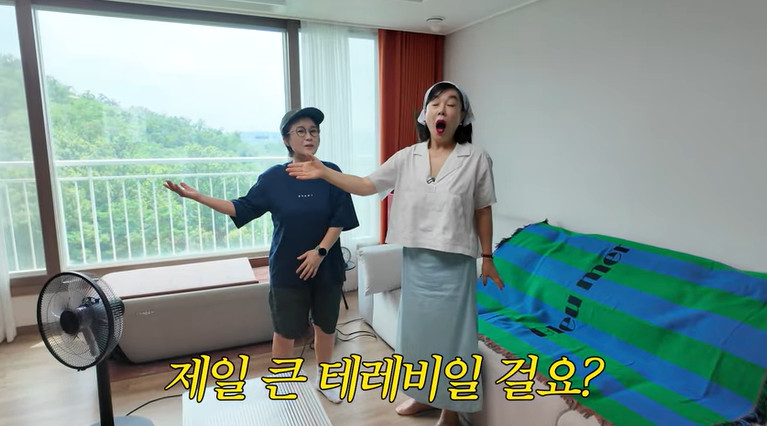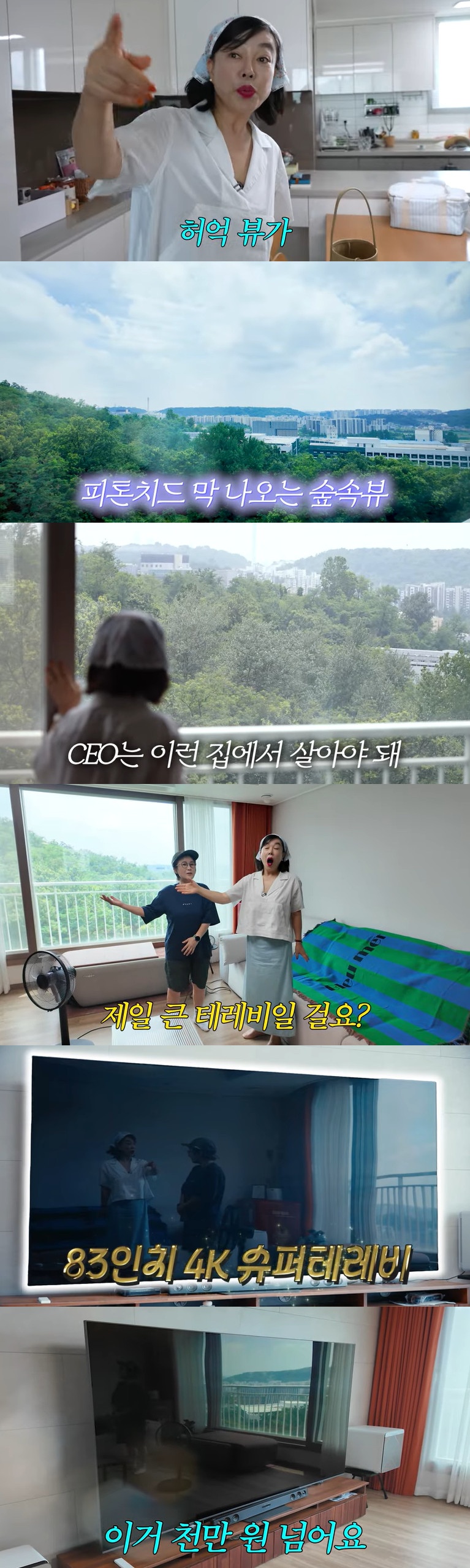 그런가 하면 최화정은 숲속 뷰뿐만 아니라 남다른 TV의 크기에 깜짝 놀란 모습을 보였다.