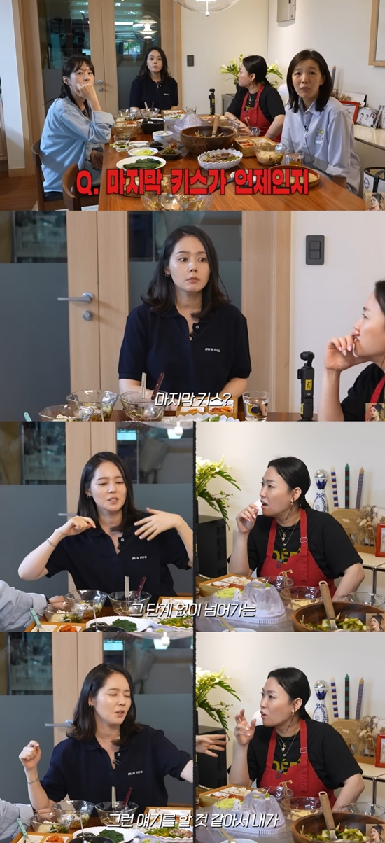 제작진은 이들에게 "유튜브에서 많이 하는 공식 질문이 있다. 마지막 키스가 언제냐"라고 질문했다. 한가인은 "마지막 키스?"라며 속이 안 좋은 듯한 얼굴을 했다. 지인 중 한 명이 "저는 일주일이 안 됐다"라고 밝히자, "아흐"라며 고개를 돌리며 질색했다.