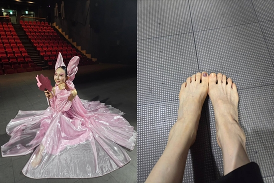 11일 채시라는 "'단심' 연습 초반 왼쪽 발등 발바닥 발목의 통증으로 파스를 너무 오래 붙여 생긴 가려운 반응들과 중간에 너무 아파 괴로울 정도로 반슈즈 때문에 생긴 엄지발톱의 운명. 제발 빠지지만 말아라. 그러나 무용가들이 겪는 고충을 조금이나마 느낀 내겐 영광의 상처들"이라며 발목과 발가락 상처 사진을 공유했다.