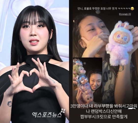 정품 라부부 구매에 성공한 이영지는 자신의 라이브 방송을 캡처한 팬들의 게시물을 공유하면서 "3만 명이나 내 라부부깡을 봐줘서 고마워. 나 랜덤박스 다신 안 해. 짭부부 시크릿으로 만족할게"라고 다짐해 웃음을 자아낸다.