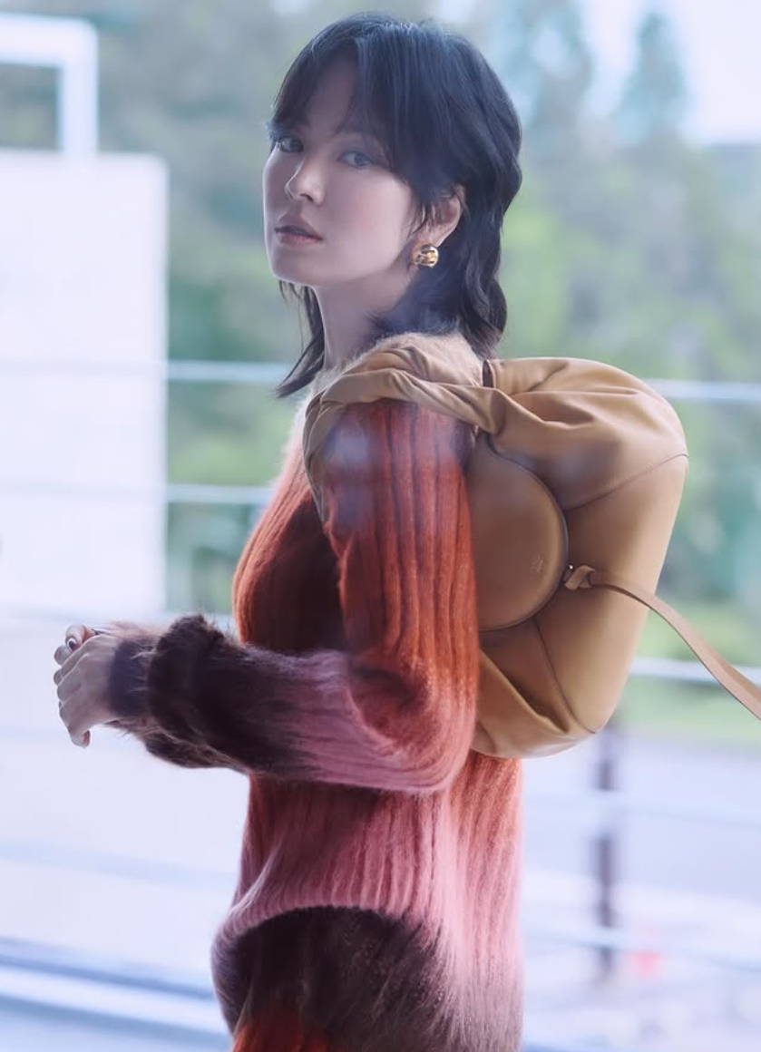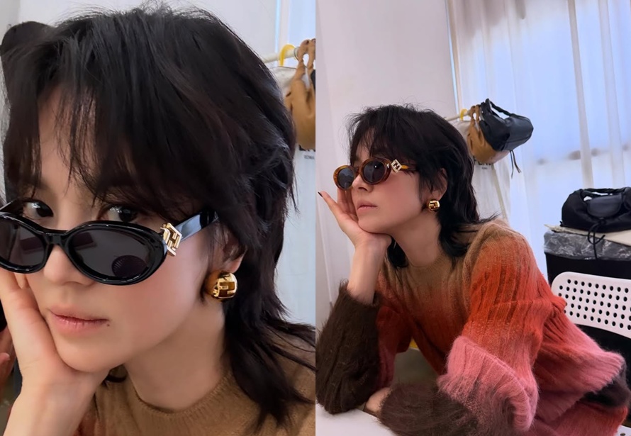 공개된 사진 속 송혜교는 블랙 선글라스에 울프컷 헤어스타일, 골드 이어링과 화려한 니트 스타일링을 더해 도회적이면서도 시크한 분위기를 자아냈다.